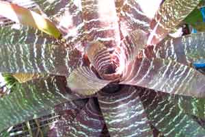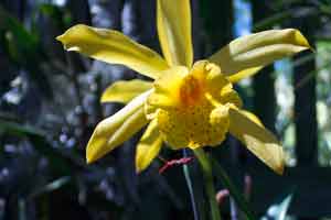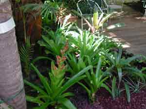 The main garden area with its elevated walkways is canopied with 70 species of palms, and contains ferns, orchids, bromeliads, and begonias from around the world. Next to this area is the "sun garden" with roses, daylilies, and other sun-loving plants.