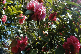 | On Saturday, March 10th, three of us with connections to the KenTal Garden Club went to Leucadia to visit Dean Turney's gardens. Dean is the President of the San Diego Camellia Society. It was a somewhat overcast day which was perfect weather to see the variety of camellias he's cultivating and the smaller number of azaleas. |